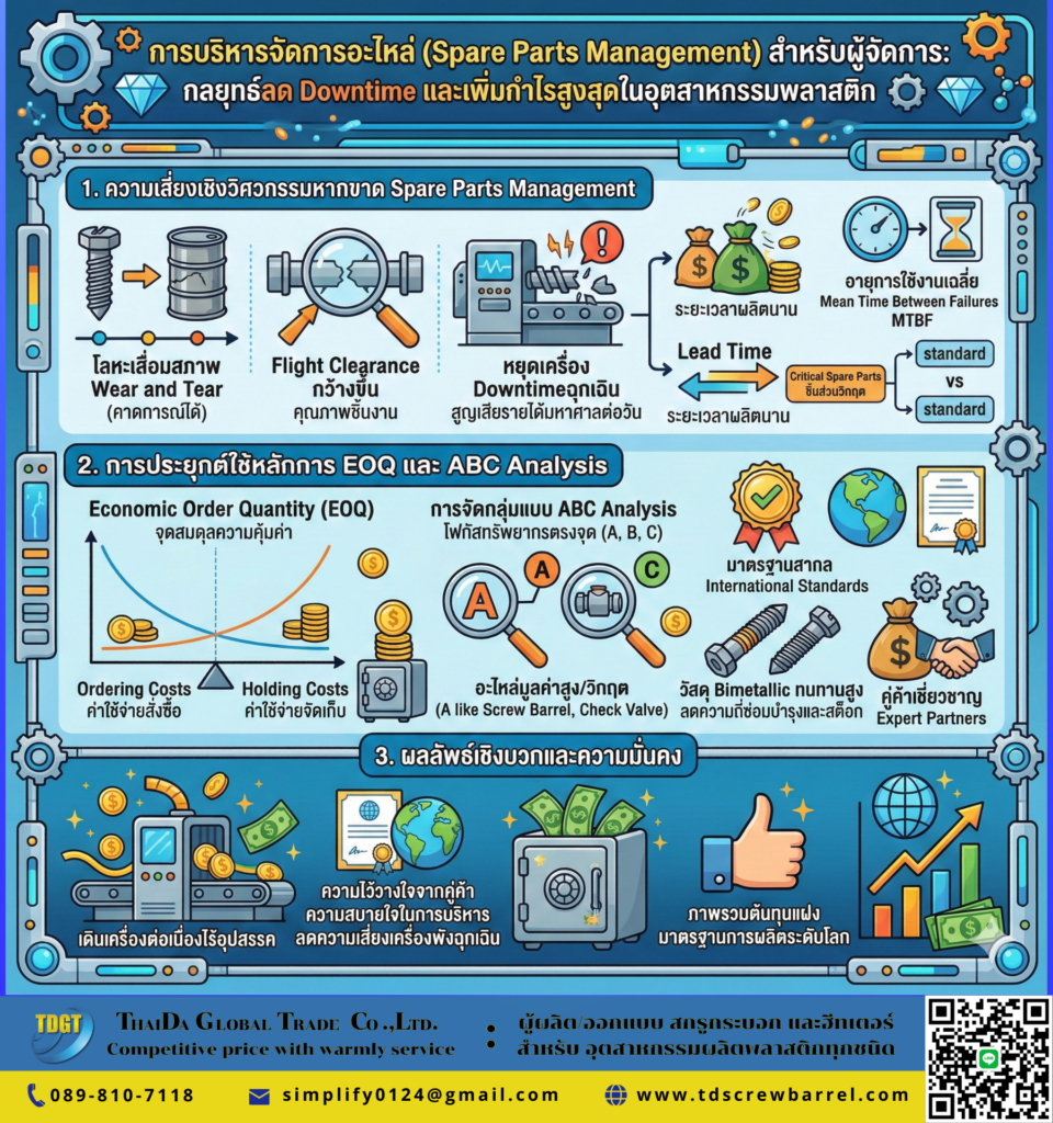 คู่มือ การบริหารจัดการอะไหล่ (Spare Parts Management) สำหรับผู้จัดการโรงงานพลาสติก และการคำนวณอายุการใช้งาน Screw Barrel